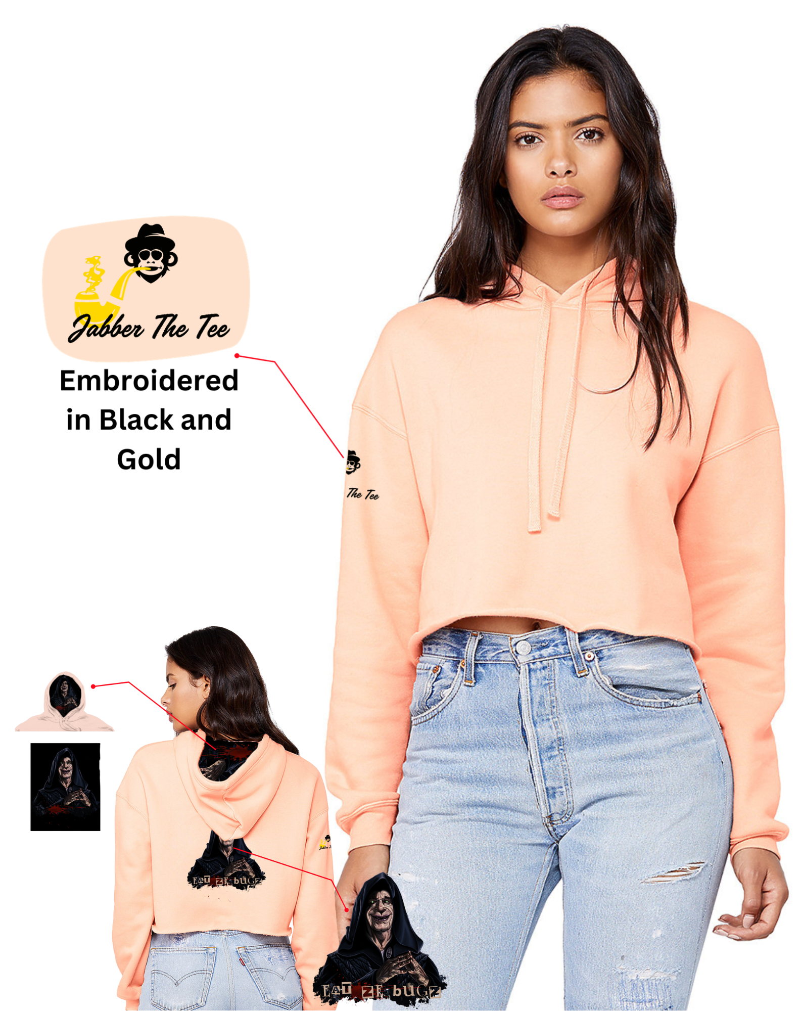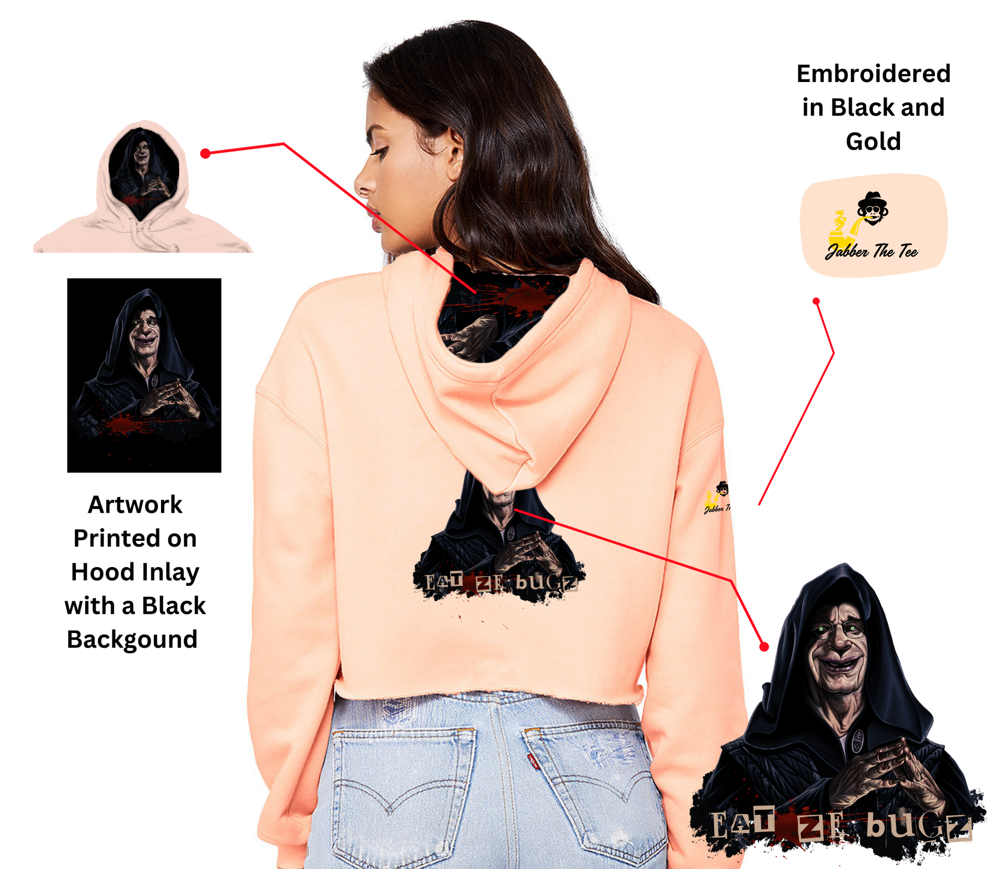 The artwork features a well-known Darth Veda character who has diabolical plans for everyone that he wants realized by 2030. The inlay of the hoodie has a variation of the same artwork with a peach background on the Black and Grey options and A Black background on the Peach and Pink. But thats not all, this piece also features a Gold and Silver embroidered Jabber logo on the right sleeve of the Black and Dark Grey options and Black and Gold Logo on the Peach and Pink Options. The hoodie itself has a raw lower cut, drop shoulders, and dyed-to-match drawstring.
